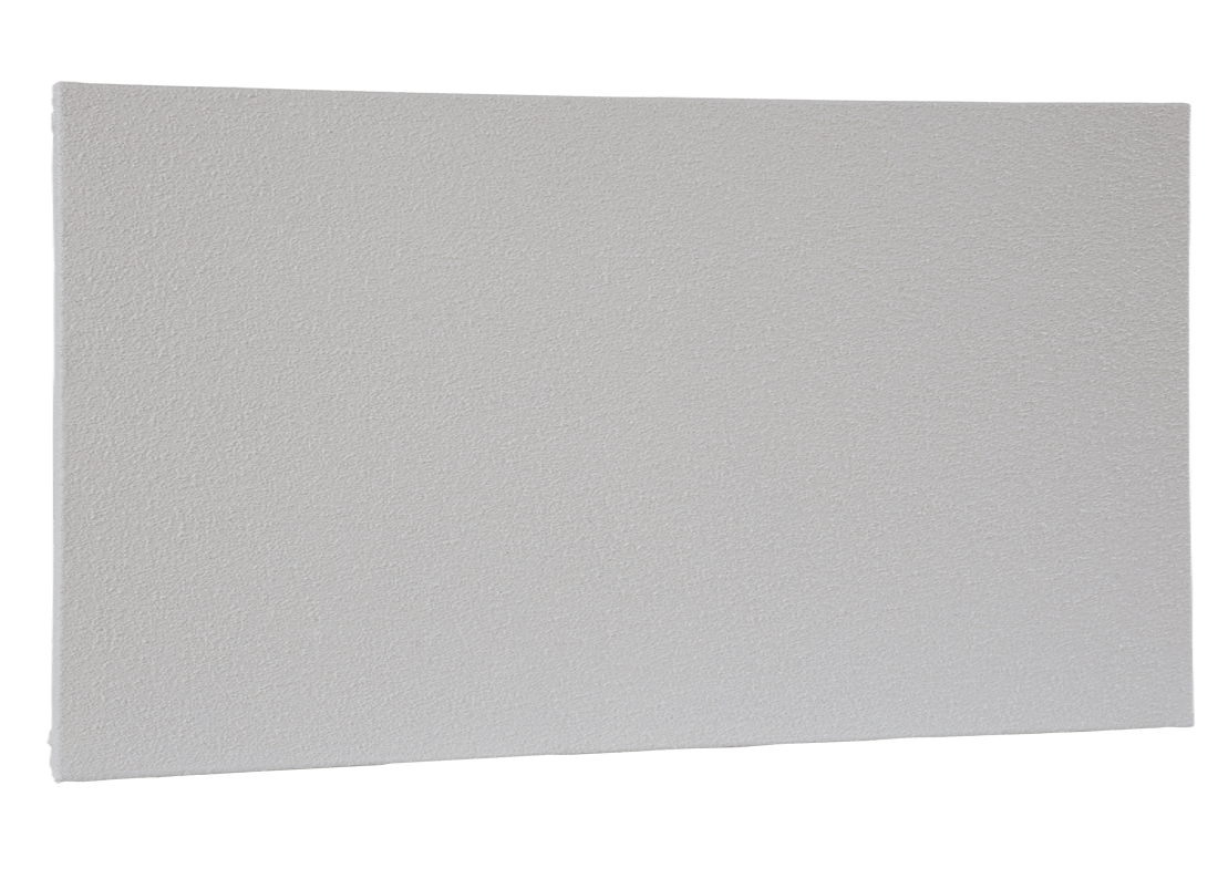 Die Oberfläche gleicht eine Rau verputzen Wand – damit fügt sich das Paneel perfekt in die meisten Räumlichkeiten – gerade bei Deckenmontage ist diese Ausführung unsere erste Wahl. Das Paneel lädt sich statisch nicht auf, somit ist keine übermäßige Staubablagerung zu erwarten.